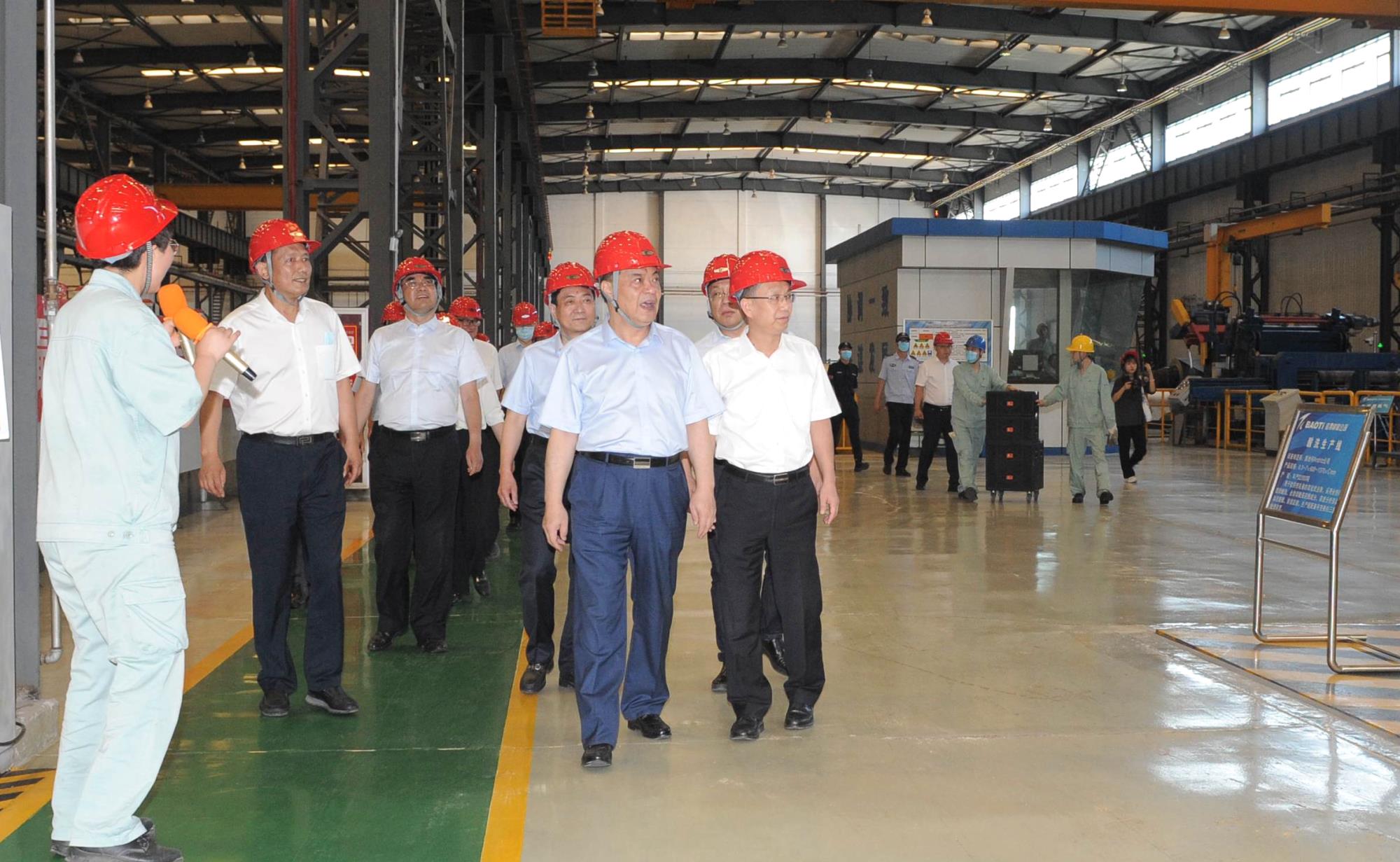 开工仪式前,与会人员先后到宝钛集团6300吨厂房、带箔材厂房、钛带厂房进行了项目现场观摩。